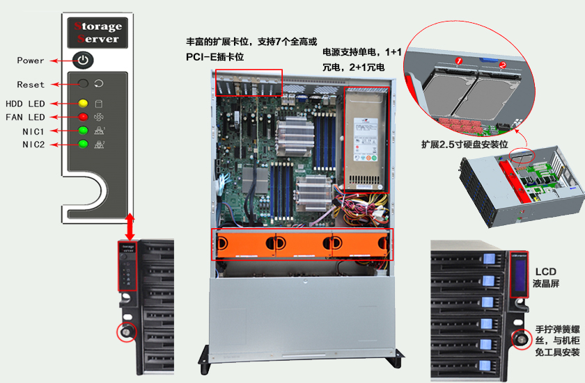 24个3.5"寸硬盘热插拔硬盘,可扩展2个2.5"寸硬盘 |