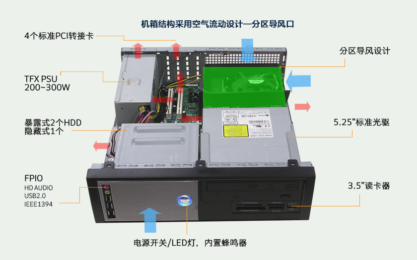 ——核心区域导风罩设计,前面板同通风网设计,符合Intel 3G以上CPU散热规范